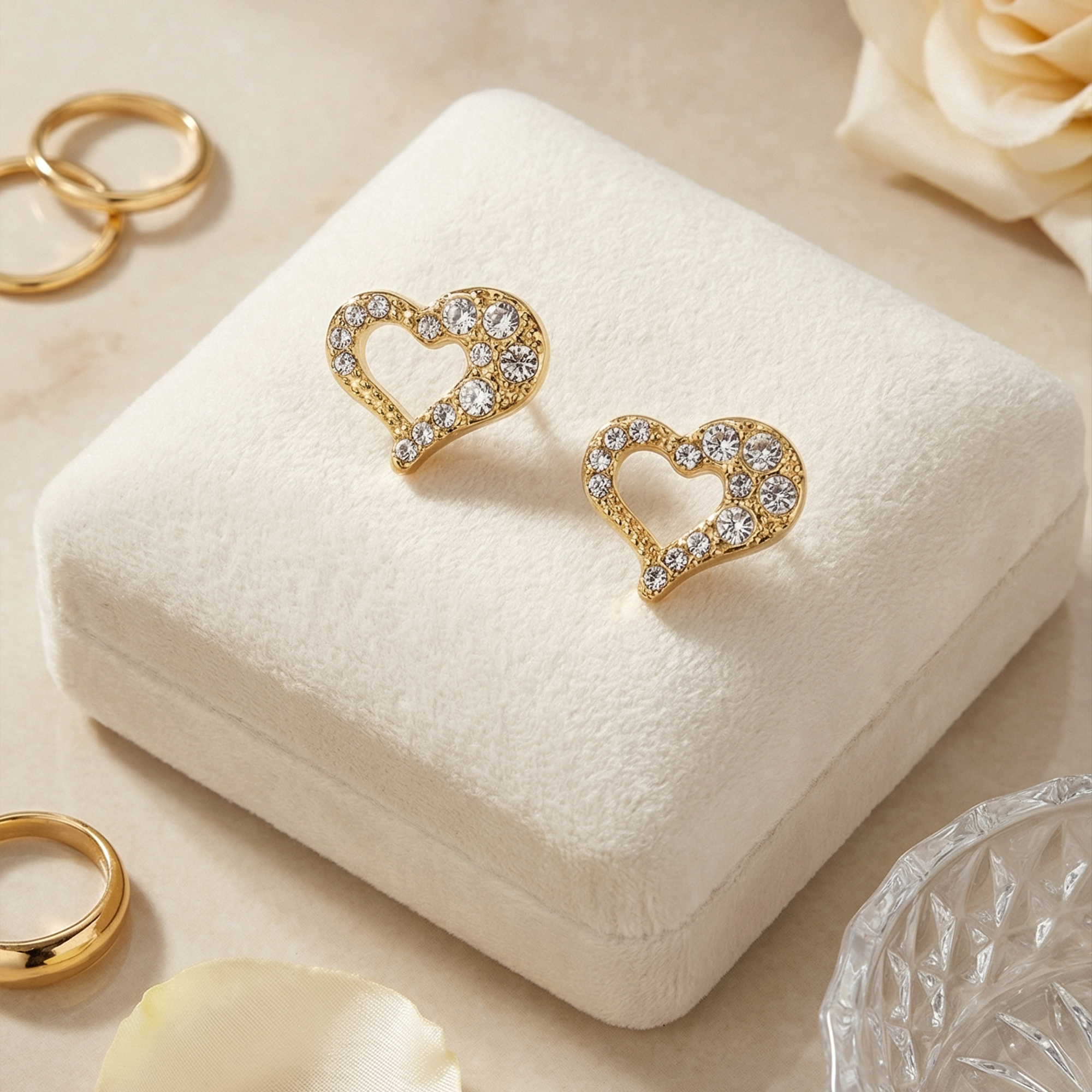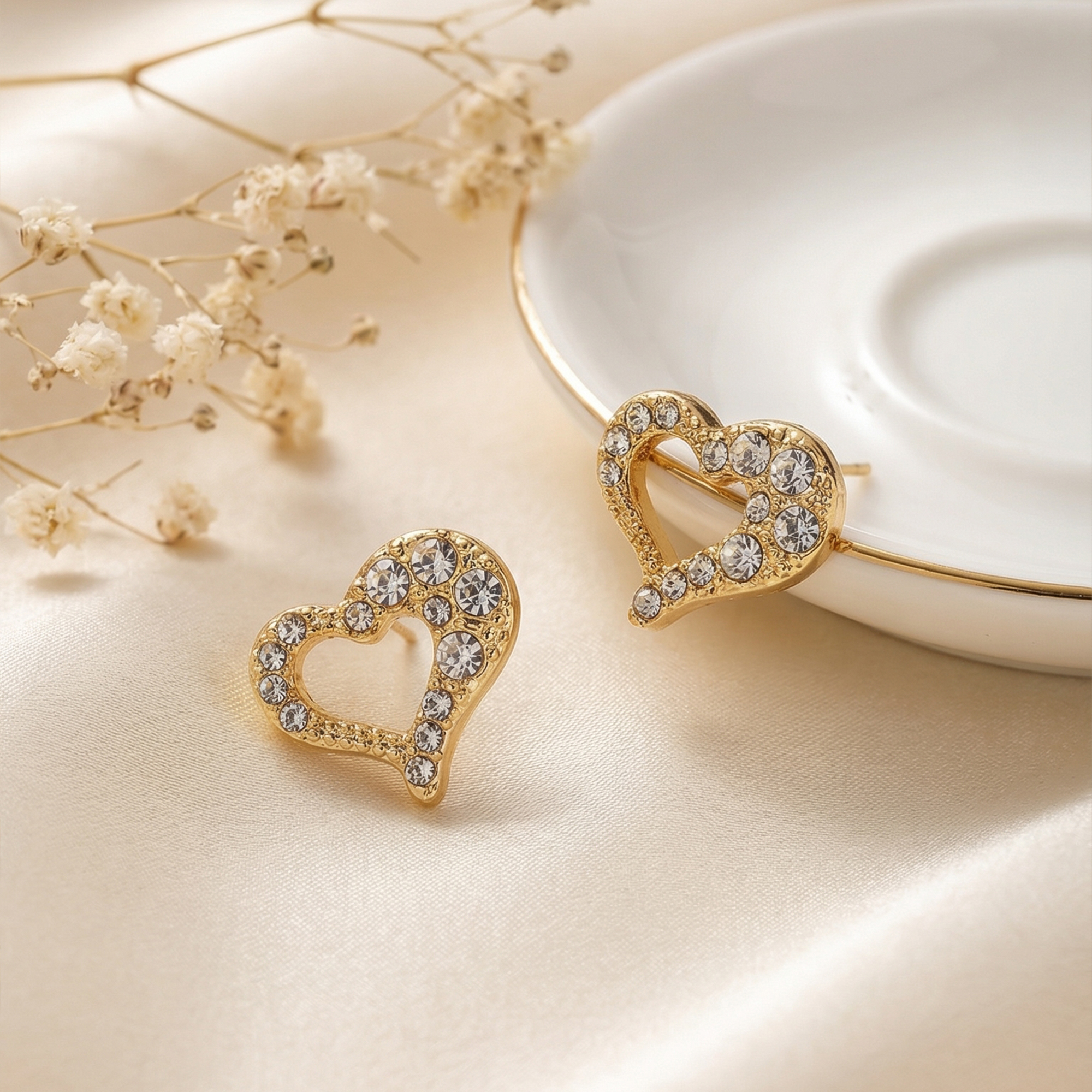 - Design: Elegant open-heart shape with precision-set crystals.