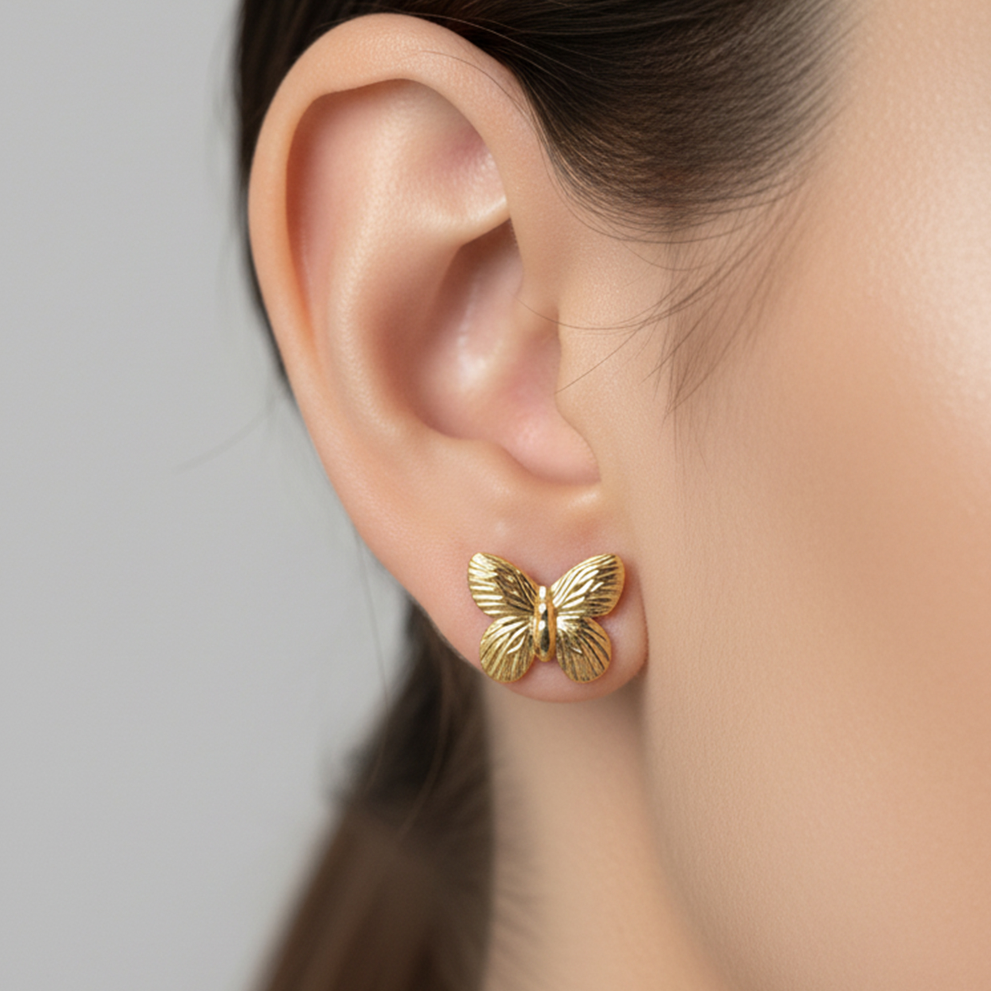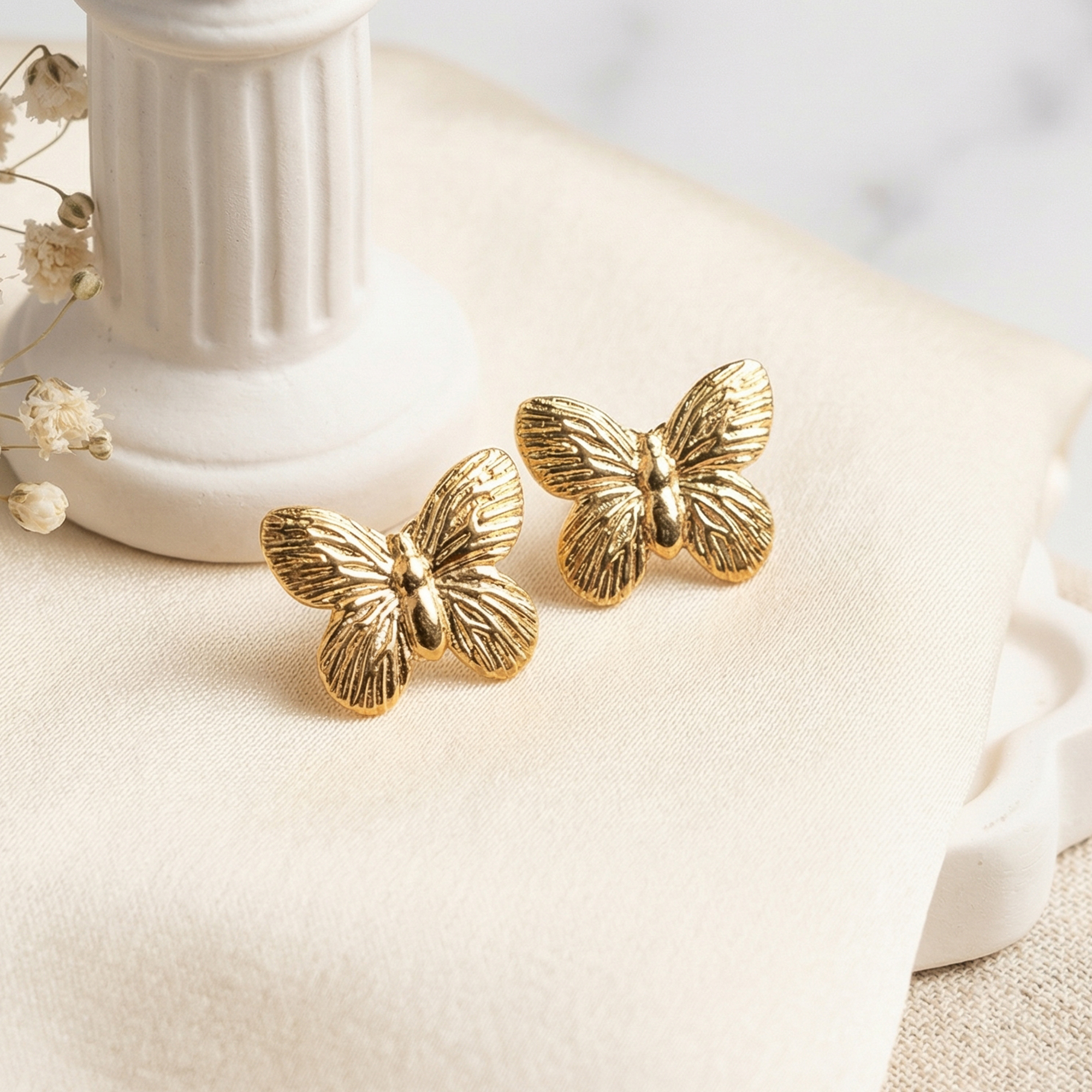 Symbolizing grace and transformation, our Textured Butterfly Stud Earrings are the perfect blend of delicate design and durable quality. Featuring intricate wing detailing that catches the light from every angle, these studs offer a sophisticated aesthetic without the high maintenance.